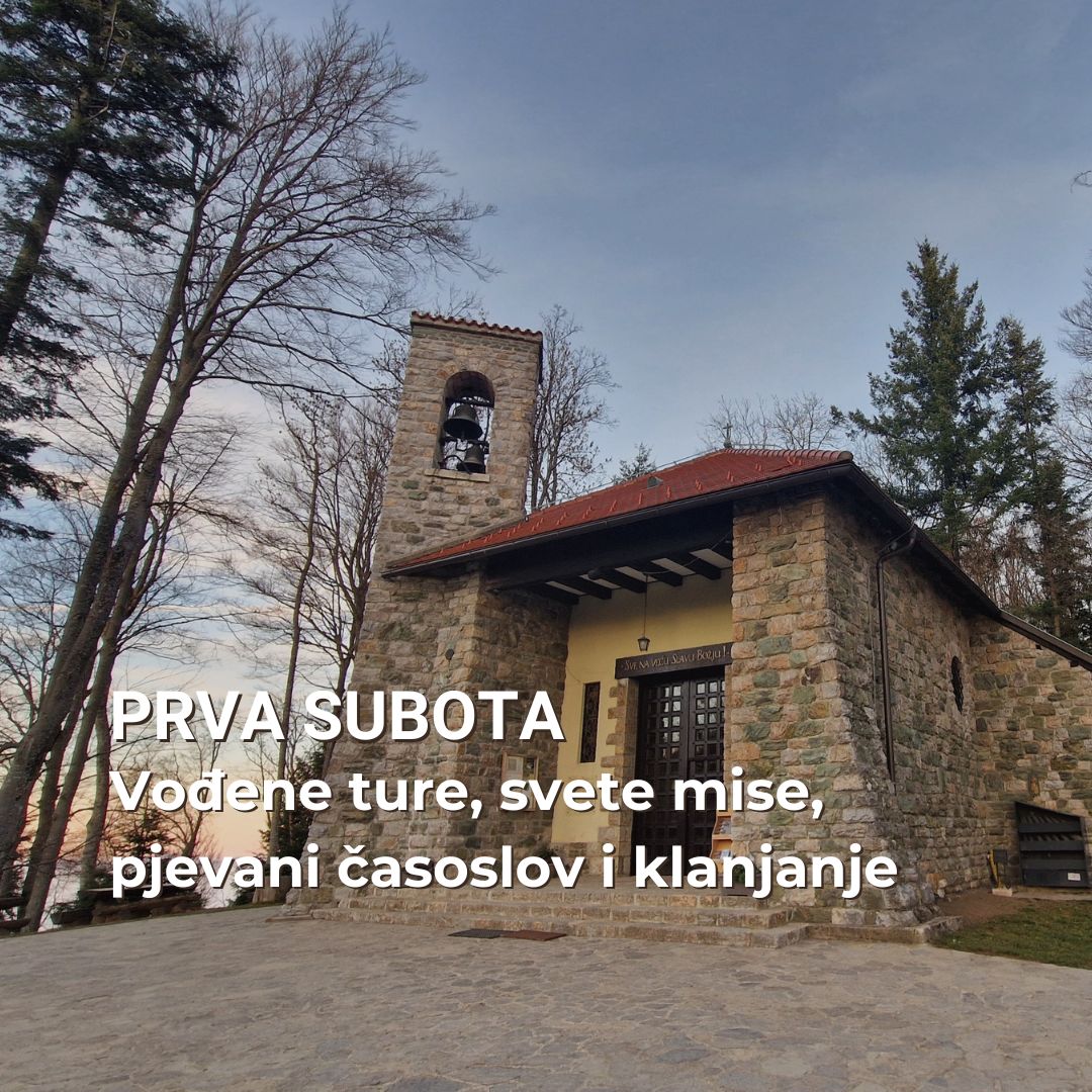 Prve subote u mjesecu u katoličkoj su tradiciji osobito posvećene Bezgrješnom Srcu Marijinu, a mi vas pozivamo u Kapelicu Majke Božje Sljemenske, Kraljice Hrvata, na molitvu kroz slavljenje euharistije, pjevani časoslovi i euharistijskoi klanjanje. Također na prvu subotu svi posjetitelji imaju priliku u vođenim turama čuti detalje iz bogate prošlosti i upoznati kapelicu Kraljice Hrvata.…